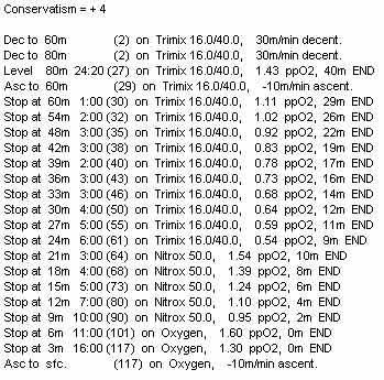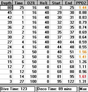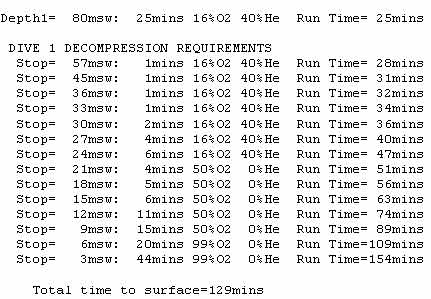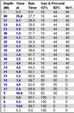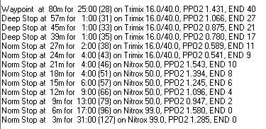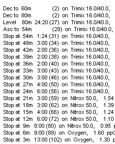 of deep stops, many in the medium/slow tissue on gassing range. Slow tissues are poorly
