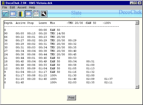 Having created an ascent, you can change points and edit gases as before. If, for instance, an ICD risk is shown, hover over the relevant point and make a note of the recommendation. Change the gas to suit, then recreate the ascent.